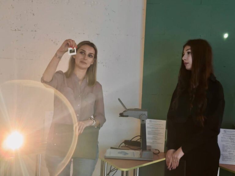 Научно-познавательная образовательная сессия позволила школьникам познакомиться с выставкой-исследованием технических средств СССР «Школьный проектор времени: от пленки к экрану». О коллекции аутентичных приборов 1950-х-1980-х годов, включающей в себя фильмоскопы, графопроекторы, слайдопроекторы, эпипроекторы, кинопроекторы, оригинальные диафильмы и исторические фотоснимки, рассказала специалист «Кванториума» ЛГПУ Алена Турилова. Ребята самостоятельно создавали оригинальные слайды для воображаемых уроков, запускали фильмоскоп, выстраивали кадры диафильма.