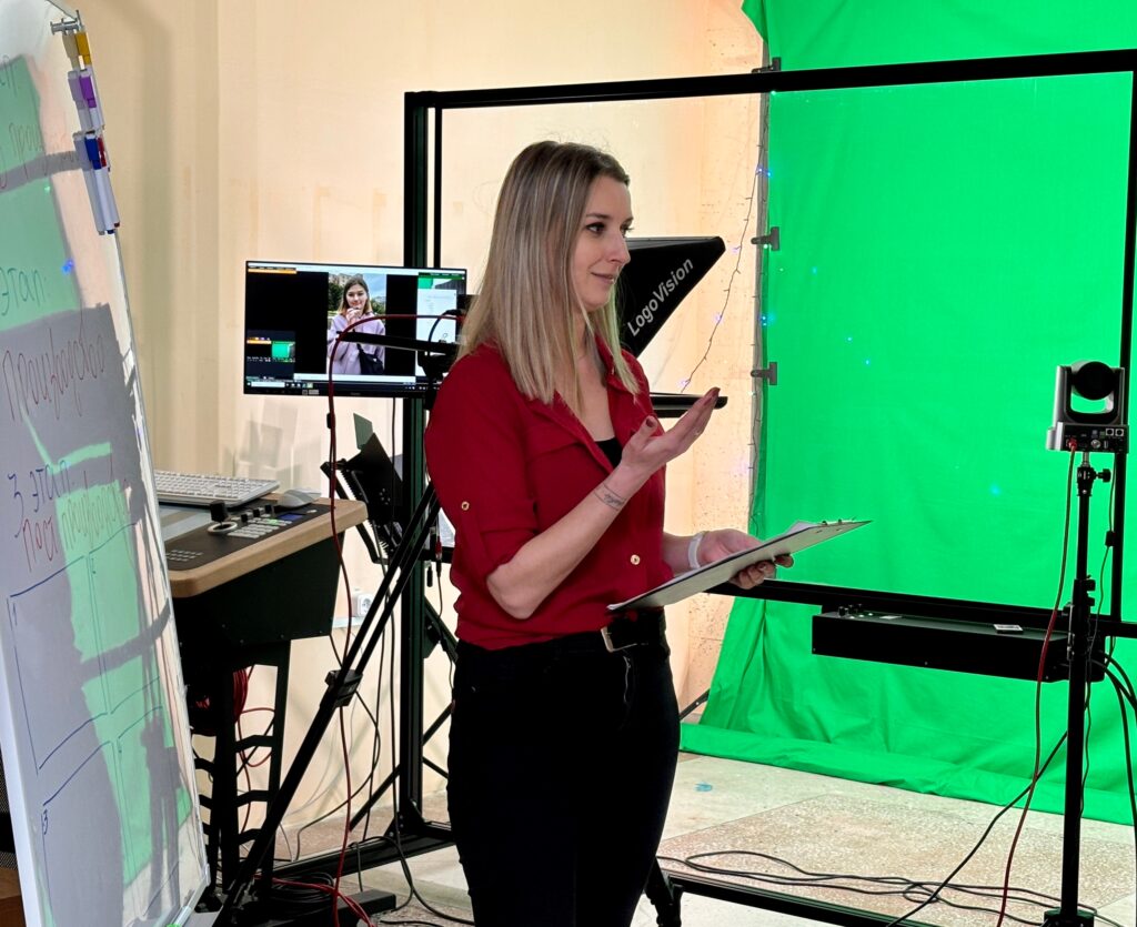 Особое внимание в своей презентации специалист уделила роли ключевых членов съёмочной группы: режиссёра, сценариста и продюсера. Под руководством специалиста участники попробовали вести программу перед камерой, читая заранее подготовленные реплики через телесуфлер, экспериментируя с разными интонациями и манерами подачи.