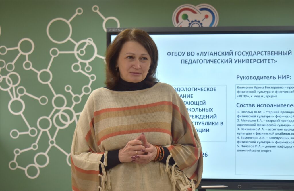 Встреча началась с содержательного погружения в тему здоровьесбережения в цифровую эпоху. Ирина Клименко, профессор кафедры адаптивной физической культуры и физической реабилитации Института физического воспитания и спорта ЛГПУ, кандидат медицинских наук, доцент, представила результаты научно-исследовательской работы.